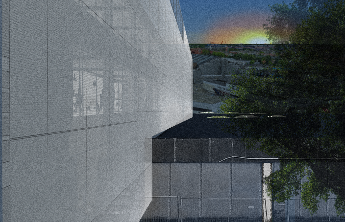 de routing die door de gebruiker wordt afgelegd langs het vervallen en verlaten gebouw staat symbool voor het verhaal van de stad, van vervallen stad naar wereldstad, een stijgende lijn in de ontwikkeling van de volkshuisvesting tot woningmarkt sinds midden jaren 70.